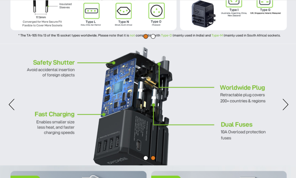 Teaser: β€œOur list includes: Adapter πŸ”Œ that can cover 200 countries, Having built in πŸ”‹ 1800 joules surge protection, and even a ⚑️Fast charging safe station β€” scroll down to find your perfect fit.”